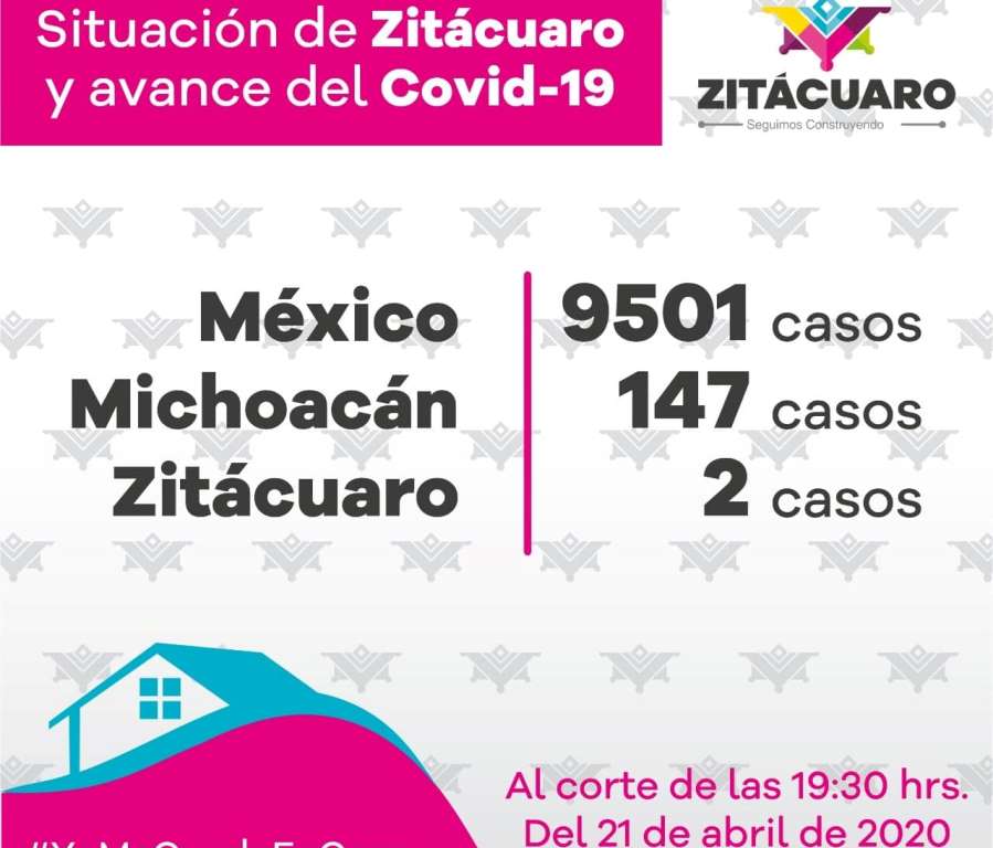 El gobierno municipal de Zitácuaro que encabeza el alcalde Hugo Alberto Hernández Suárez informa que, de acuerdo a la información emitida por el Comité Estatal de Seguridad en Salud , al corte de las 19:30 hrs., del 21 de abril de 2020, al momento se registran para COVID-19: