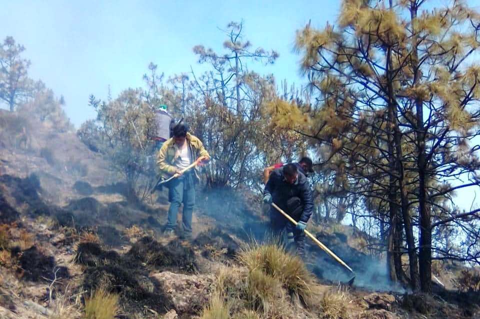 Son más de 300 brigadistas, comuneros y voluntarios, los que de manera decidida realizan las labores con el objetivo de abatir por completo las llamas.