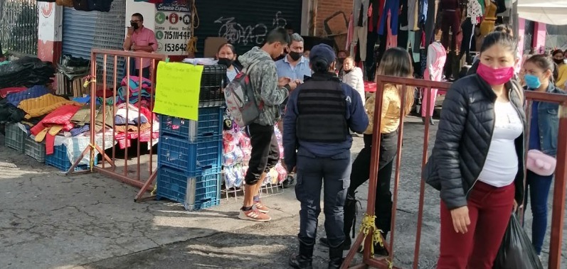 Zitácuaro, Mich., 2 de julio de 2020.- Con los cuidados necesarios, este jueves elementos de la Secretaría de Seguridad Pública municipal, realizaron trabajos de proximidad social en el centro de la ciudad y en el tianguis, para orientar y sugerir a las personas que transitan en estos puntos, eviten aglomeraciones, además, continúen acatando las medidas preventivas ante COVID-19.