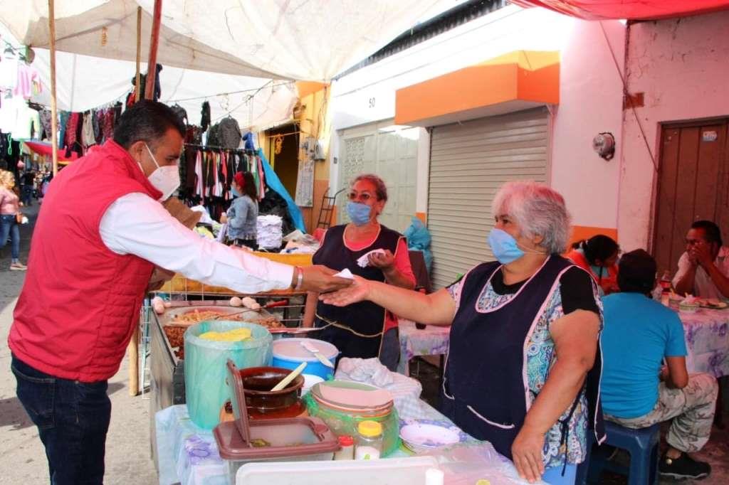 Distribuye secretario del Ayuntamiento, cubrebocas a comerciantes y visitantes del Tianguis