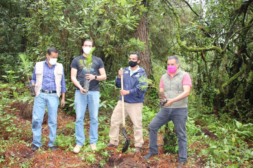 En esta reforestación también participaron autoridades de Cofom, Conanp y vecinos. Durante este año se plantarán cerca de 50 mil árboles en la periferia del Cerro Cacique.