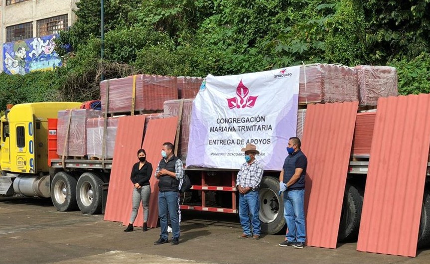 Zitácuaro, Mich.- Gracias a la coordinación entre el Gobierno municipal que preside el alcalde Hugo Alberto Hernández Suárez y la Congregación Mariana Trinitaria, a través de la secretaria de Desarrollo Social y Rural se hizo la entrega de láminas subsidiadas, a cerca de 100 familias zitacuarenses.