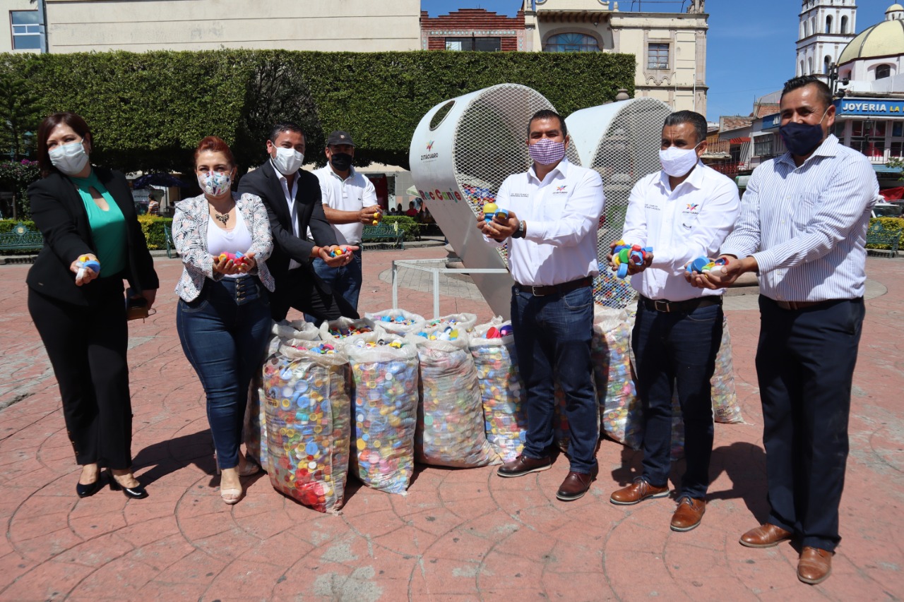 Zitácuaro, Mich.- El Gobierno Municipal de Zitácuaro encabezado por el Presidente Hugo Alberto Hernández Suárez, a través de la Secretaría de Servicios Públicos municipales, hicieron entrega de 60 costales de tapitas de plástico, para el programa RECICANJE, que otorga apoyos a niños enfermos de cáncer.