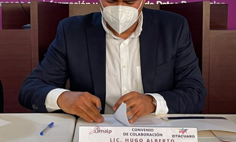 Zitácuaro, Mich, a 25 de marzo del 2021.- Como parte de las acciones en materia de rendición de cuentas y eficacia administrativa que impulsa el Gobierno de Zitácuaro, el alcalde Hugo Alberto Hernández Suárez firmó un convenio de colaboración con el Instituto Michoacano de Transparencia y Protección de Datos Personales, IMAIP, a fin de seguir fortaleciendo este esquema.