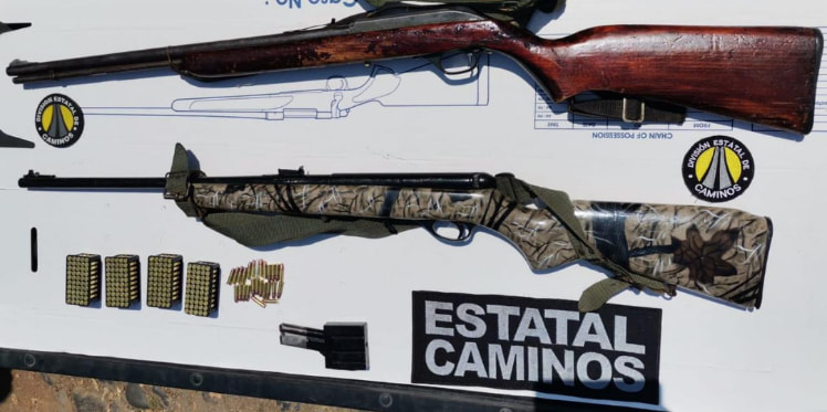 Al marcarles el alto, los oficiales procedieron a realizarles una inspección, localizando al interior de la unidad dos armas de fuego calibre .22 mm., y 226 cartuchos útiles, siendo asegurados y puestos a disposición de la autoridad competente, a efecto de realizar las diligencias respectivas.