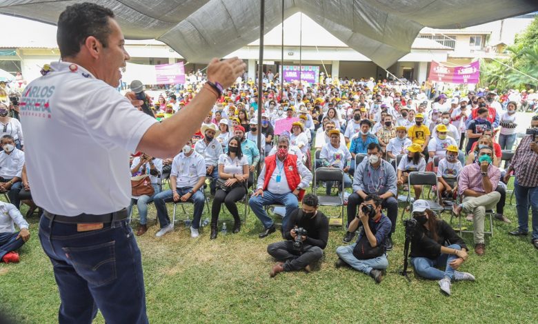 En gira de trabajo por el municipio de Los Reyes, el candidato común al solio de Ocampo arengó a las estructuras del PRI, PAN y PRD a echar toda la agua por el mismo surco, a tres semanas y media de la gran elección que se celebrará México.