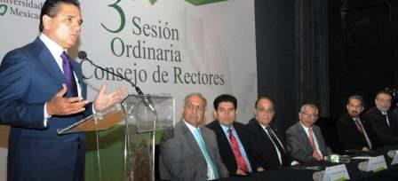 En tanto que Roberto Villers Aispuro, director general académico de la Asociación Nacional de Universidades e Instituciones de Educación Superior (ANUIES), refirió que para las mesas de trabajo con la Federación, se establecieron cinco ejes: ampliación de la cobertura, mejora de la calidad educativa, responsabilidad social universitaria, actualización de la normatividad y financiamiento con visión de estado.