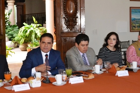 También participan en la reunión el Presidente del Comité Directivo Estatal del PRI y el Delegado de la Secretaría de Gobernación en Michoacán.