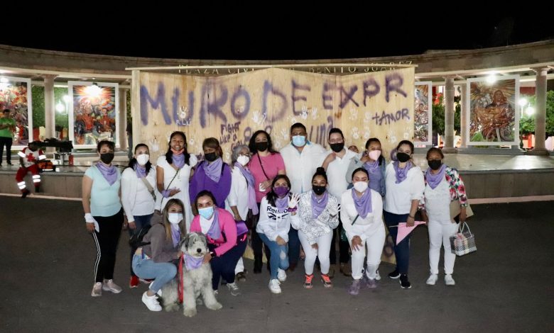 Para finalizar esta jornada, fue la plaza cívica Benito Juárez, el escenario donde se instaló una mampara donde un grupo de mujeres, encabezadas por funcionarias municipales, plasmaron sus expresiones en torno a frenar la lucha contra la violencia hacia este sector.