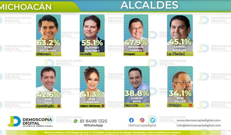 En este último resultado, le sigue el alcalde de Morelia, con casi un 10 por ciento abajo de diferencia y Mitofsky postula Alfonso Martínez, en la posición número 145 de los 150. En Demoscopía, les siguen a ambos, los mandatarios de Uruapan, La Piedad, Apatzingán, Lázaro Cárdenas, Zamora e Hidalgo.