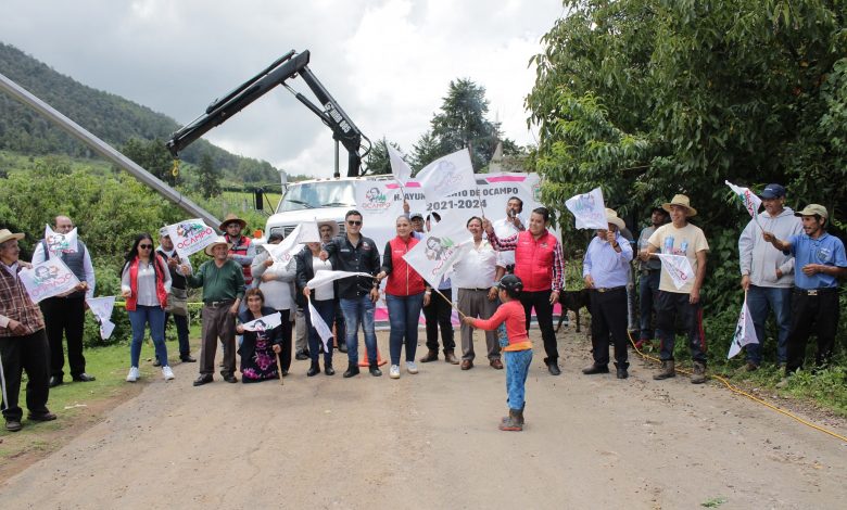 Ocampo, Mich., 8 de agosto de 2022.- – El presidente municipal Amado Gómez acompañado por el cuerpo edilicio, la directora de obras públicas y el subdirector de urbanismo; se dieron cita con personas de la localidad de Laguna Verde encabezadas por Emiro Reséndiz Martínez, encargado del orden de Laguna Verde, José Guadalupe Trejo Castillo, encargado del orden de La Ciénega, Miguel Mora Colin, encargado del orden del Tejocote; para el arranque de tan importante obra.
