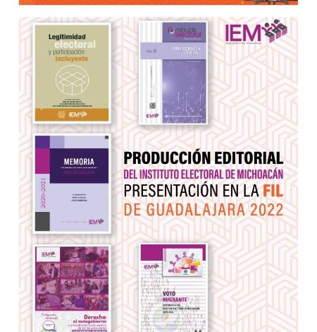 Morelia, Michoacán, 1 de Diciembre de 2022. Con una interesante propuesta editorial el Instituto Electoral de Michoacán (IEM), participará en la edición 36 de la Feria Internacional del Libro de Guadalajara #FIL2022 el 01 y 02 de diciembre de 2022, realizando diversas presentaciones editoriales y actividades para las infancias y juventudes.