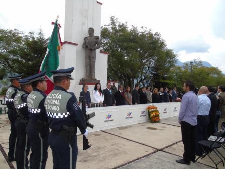 Esta celebración se llevó a cabo en el Cerrito de la Independencia, ante la presencia de regidores, funcionarios, directores, empleados municipales y comunidad estudiantil de distintos planteles de este municipio. La Escolta y el Himno Nacional, estuvieron a cargo de la Dirección de Seguridad Pública.