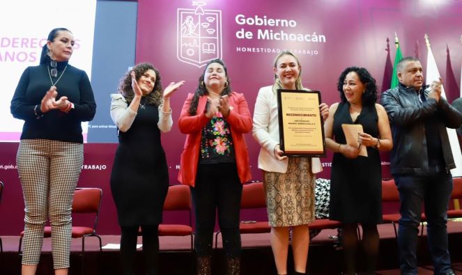 Lo anterior durante el acto de entrega del Reconocimiento Estatal por la Promoción y Defensa de los Derechos Humanos 2022, que otorga el Gobierno de Michoacán a las personas físicas y/o morales, o colectivos, que hayan destacado en el año, por sus aportaciones en la protección, respeto y promoción de los derechos humanos.