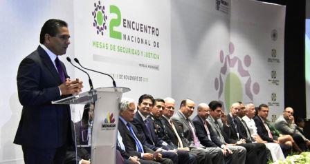 En presencia del comisionado Nacional de Seguridad, Renato Sales Heredia, así como de los fundadores y representantes de las Mesas de Seguridad de 16 entidades de la República, Aureoles Conejo dijo estar seguro que con el respaldo de los ciudadanos, sus propuestas y las acciones coordinadas con los Gobiernos de la República y Municipales, hoy Michoacán tiene otro rostro.