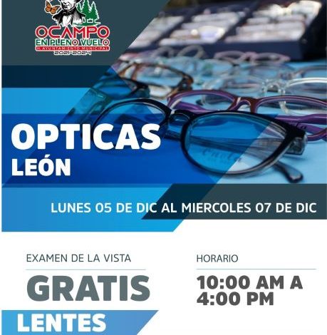 Ocampo, Mich., 5 de Diciembre de 2022.- Con el objetivo de ayudar en la economía familiar y fortalecer la salud visual de los ocampenses, el H. Ayuntamiento de Ocampo en coordinación con la óptica León ofrece 2×1 en lentes con exámen de la vista gratis.