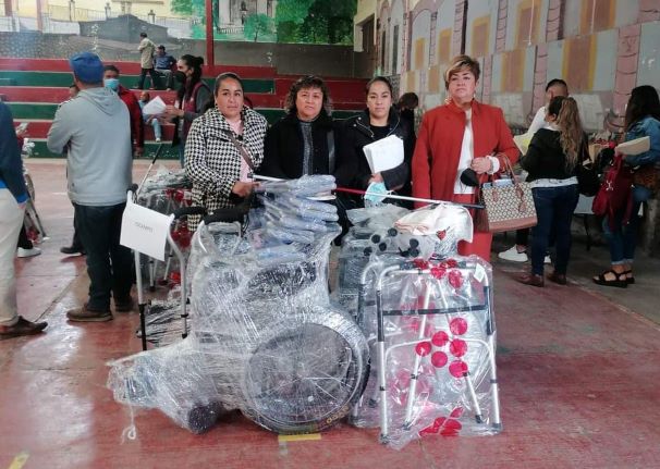 Ocampo, Mich., 19 de agosto de 2022.- Carmela Cerecero directora del DIF municipal en compañía de personal del mismo acudieron a recibir bastones y andaderas especiales para personas con discapacidad visual.