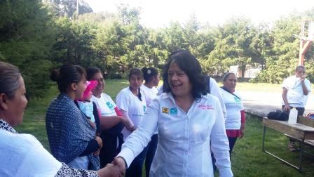Hidalgo, Michoacán. 18 de noviembre de 2015.- La candidata del Partido de la Revolución Democrática (PRD)- Nueva Alianza, Jeovana Alcántar Baca a la diputación local del Distrito XII recorrió las comunidades de Cruz de Caminos y Cuchipitio, del municipio de Hidalgo, donde recibió muestras de apoyo de los habitantes quienes le reiteraron su voto en la contienda, de igual forma en Irimbo delegados de la Liga de Fútbol la respaldaron para el proceso de este 6 de diciembre.