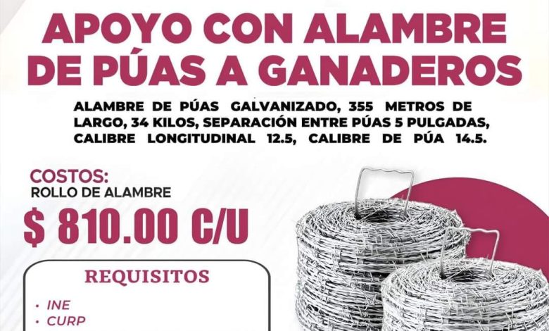 Tuxpan, Mich., 14 de noviembre de 2024.- El Ayuntamiento de Tuxpan que Preside David López Flores invita a los ganaderos del municipio a inscribirse en la Dirección de Desarrollo Agropecuario para recibir el apoyo de alambre de púas a bajo costo.