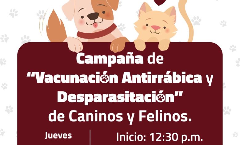 Zitácuaro, Mich., 4 de Diciembre de 2024.- El Gobierno de la Heroica Zitácuaro invita a la Jornada de Vacunación y Desparasitación de Caninos y Felinos, que se llevará a cabo hoy, jueves 5 de diciembre, a las 12:30 PM en el Patio de la Casona de la Estación.