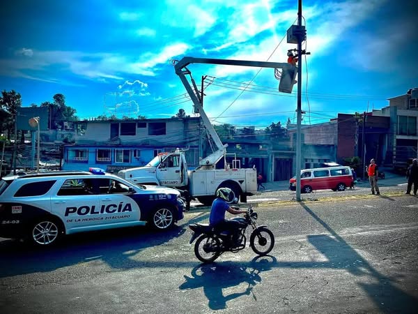 Zitácuaro, Mich., 20 de febrero de 2025.- La Policía de la Heroica, realizó el día de hoy el retiro de las cámaras y poste del C2 en el lugar conocido como “El Caballito (salida a Morelia).
