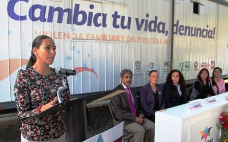 Araceli Palomares Miranda, Fiscal Especial, anunció que en Zitácuaro dará apertura esta acción que recorrerá todos los municipios del estado. Agregó que el modelo de atención de la unidad móvil del Ministerio Público Itinerante forma parte de un conjunto de acciones realizadas por la Procuraduría General de Justicia del estado, a fin de apoyar de manera integral a las víctimas de los delitos de violencia de género en todas sus manifestaciones.