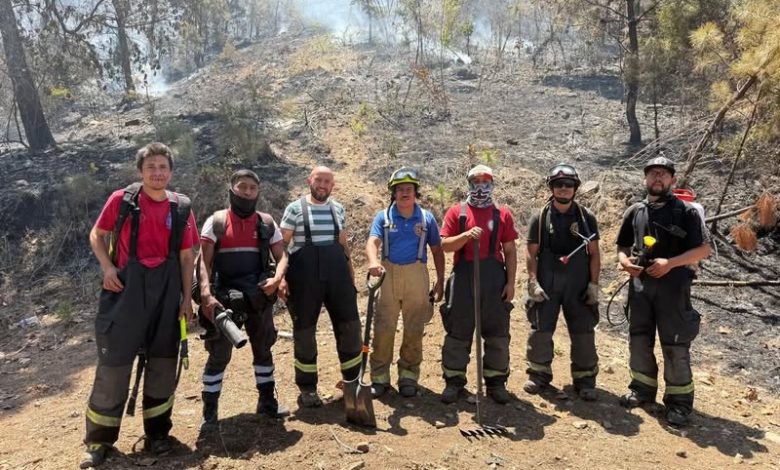 Tuxpan, Mich-. 6 de mayo de 2025.- El Comandante Luis Pérez Bernal y 10 elementos del Heroico Cuerpo de Bomberos Zitácuaro apoyan en el municipio de Tuxpan a las brigadas que combaten incendio forestal en este municipio.