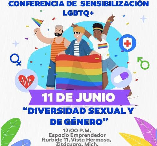 Zitácuaro, Mich., 11 de junio de 2025.- Gobierno de la Heroica te invita participar en la conferencia de sensibilización LGBTQ+ “Diversidad Sexual y de Género”, hoy miércoles 11 de junio a las 12:00 p.m. en el Espacio Emprendedor (Iturbide 11, Vista Hermosa, Zitácuaro, Michoacán).