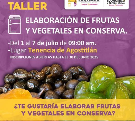 Invitan a Taller de Elaboración de Conservas en Agostitlán