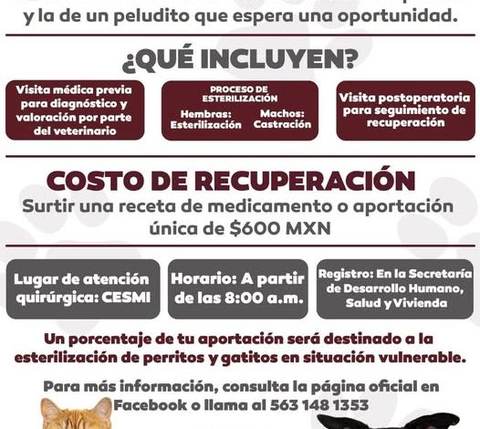 La cirugía se realiza en la Universidad CESMI, con registro previo en la Secretaría de Desarrollo Humano, Salud y Vivienda, de lunes a viernes a partir de las 8:00 a.m.