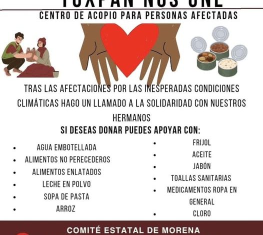 Morelia, Mich., 2 de agosto de 2025.- Tras la fuerte tormenta qué azotó algunas zonas del municipio de #Tuxpan, dejando algunas colonias y comunidades con afectaciones, el presidente de MORENA en el Estado, Jesús Mora instaló un centro Acopio en el Comité Estatal de #Morena