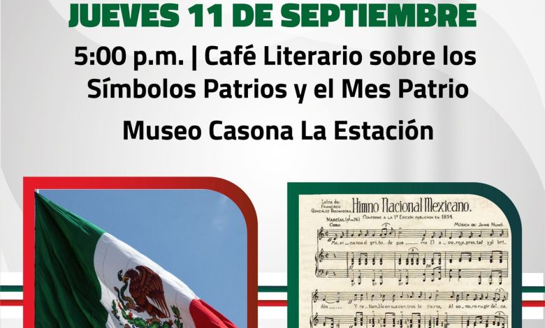 A las 5:00 p.m. se realizará el Café Literario sobre los Símbolos Patrios y el Mes Patrio, y a las 6:00 p.m. la premiación y exposición del concurso de fotografía “¿Qué amo de México?”.