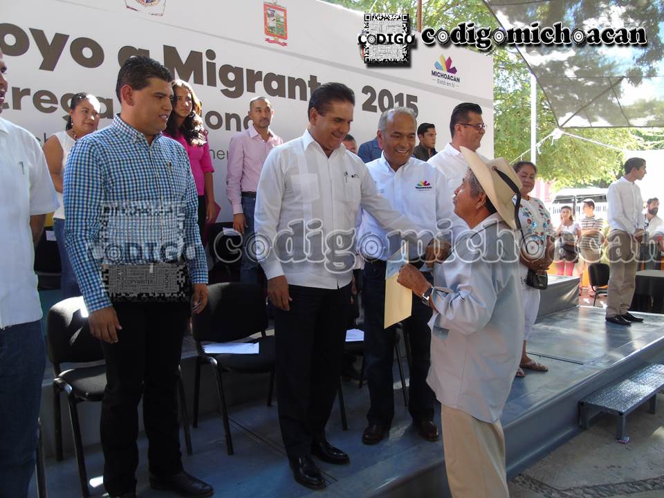 Tuzantla, Michoacán, a 8 de enero del 2016.- El reto es que en pocos meses y años tengamos las condiciones para que nuestros jóvenes no se vayan de Michoacán a Estados Unidos y que tengan mejores condiciones de trabajar y de estudiar en la entidad, afirmó el Gobernador del Estado, Silvano Aureoles Conejo, durante la entrega de recursos del Fondo de Apoyo al Migrante (FAMI) a los municipios de Tiquicheo, Benito Juárez y Tuzantla por un monto superior al millón 658 mil pesos.