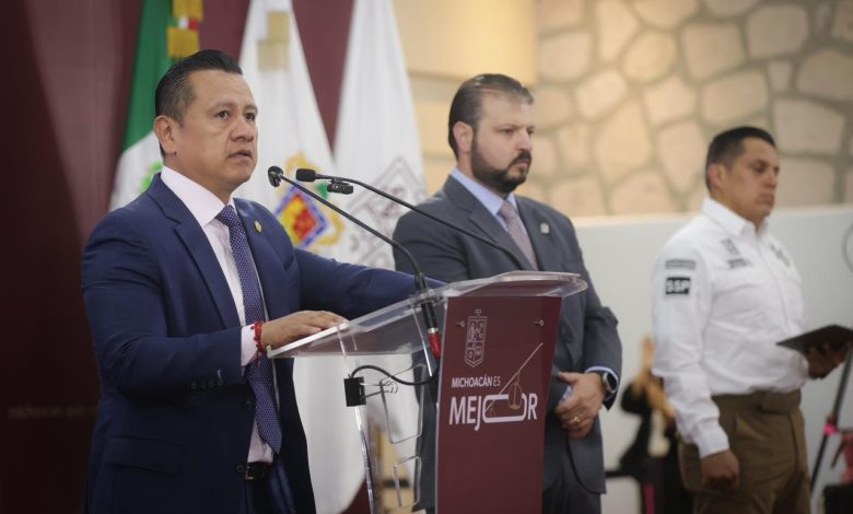 Morelia, Michoacán, a 9 de abril de 2026.- En rueda de prensa en Casa Michoacán, junto al gobernador del estado, Alfredo Ramírez Bedolla, y el secretario de Seguridad Pública Estatal, José Antonio Cruz Medina, el Fiscal General, Carlos Torres Piña, informó avances sustanciales en la investigación de los hechos registrados el pasado 24 de marzo en la Preparatoria “Antón Makárenko”, en Lázaro Cárdenas, donde un adolescente fue detenido tras privar de la vida a dos trabajadoras del plantel.