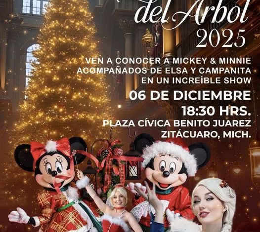 Este evento se llevará a cabo el próximo 6 de diciembre, a las 18:30 horas, en la Plaza Cívica Benito Juárez y vive un espectáculo especial con Mickey, Minnie, Elsa y Campanita.