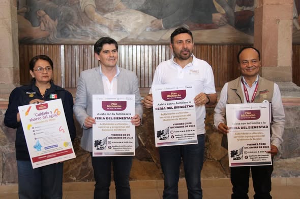 Zitácuaro, Mich., 4 de Diciembre de 2025.- Ante distintos medios de comunicación, y con la presencia de la Lic. Rosalva Cruz, representante de la Secretaría de Gobernación; del Mtro. Luis Roberto Arias Reyes, director local de Conagua Michoacán; y del Lic. Juan Arcenio Rodríguez Villafaña, responsable regional de la Secretaría del Bienestar, dimos a conocer la realización de la Feria del Bienestar en Zitácuaro.