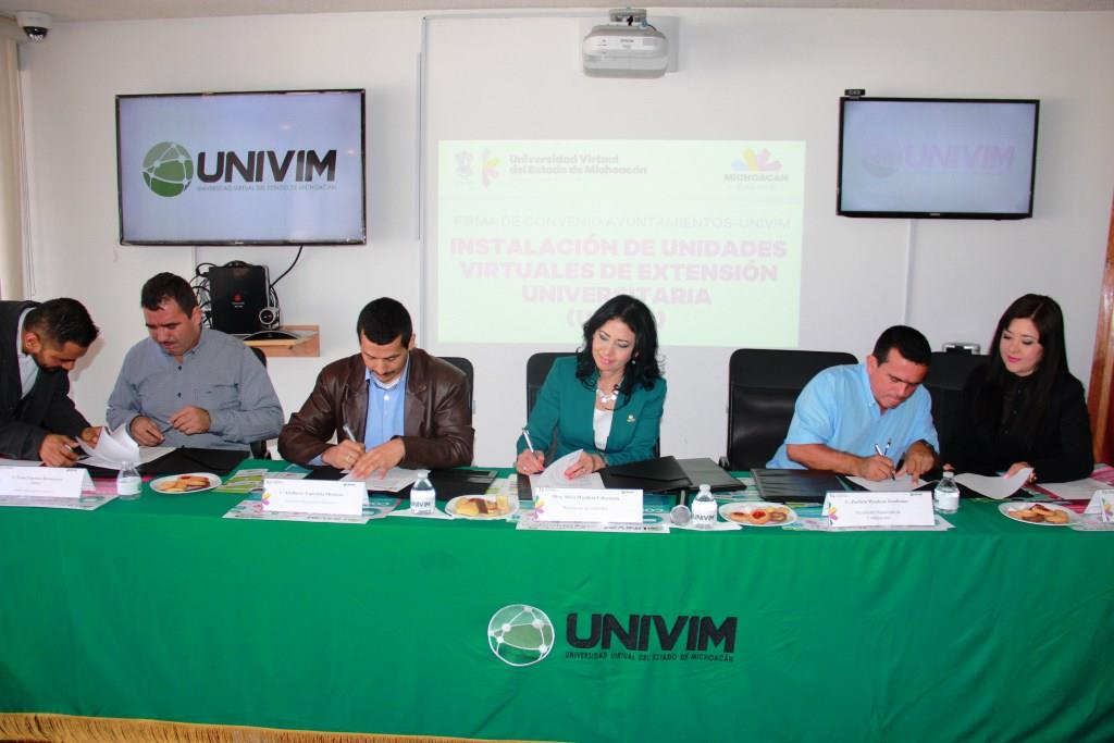 Morelia, Michoacán.- La Universidad Virtual del Estado de Michoacán (Univim) firmó el convenio de colaboración con los ayuntamientos de Chinicuila, Coahuayana y Carácuaro para la instalación de las Unidades Virtuales de Extensión Universitaria (UVEUs).