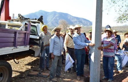 TUZANTLA, Mich., 19 de febrero de 2015.- Este jueves, el presidente municipal de Tuzantla, Lic. Octavio Ocampo Cordova, acompañado de autoridades municipales, dió el banderazo de inicio de obras para electrificar las comunidades de El Coyote, El Rancho y Las Pilas, ya que aún no cuenta con el servicio de energía eléctrica, y con lo cual se estará beneficiando así a 15familias.
