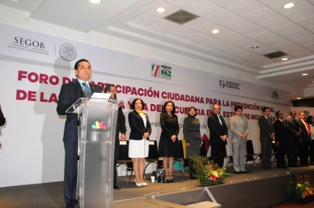 - En presencia de Alberto Begné Guerra, subsecretario de Prevención del Delito y Participación Ciudadana de la Segob, el jefe del Ejecutivo estatal inauguró el Foro de Participación Ciudadana para la Prevención Social de la Violencia y la Delincuencia.
