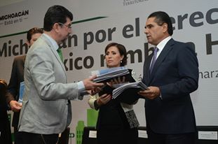 Morelia, Mich.-En Michoacán junto con el Gobierno Federal, el estado trabaja de manera coordinada, para impulsar una política pública urbana de vanguardia para el desarrollo sustentable de nuestras ciudades, la cual incluye, una legislación que promueve urbes productivas, eficientes, dignas y justas, afirmó el Gobernador Constitucional, Silvano Aureoles Conejo, al inaugurar con la secretaria de Desarrollo Agrario, Territorial y Urbano, Rosario Robles Berlanga, el Foro “Michoacán por el derecho a la ciudad: México rumbo a Hábitat III”.
