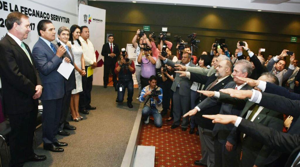 -El mandatario Silvano Aureoles tomó protesta al Consejo Directivo de la Fecanaco Servytur del Estado de Michoacán 2016-2017, que presidirá Raúl Cova.