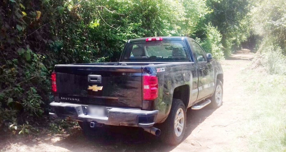 A las 15:30 horas, al transitar por la comunidad de La Guardia, del municipio de Villa Madero, los policías localizaron una camioneta marca Chevrolet, tipo Cheyenne, color negra, abandonada y con reporte de robo.