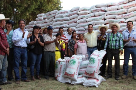Zitácuaro, Mich., 20 de mayo de 2016. Con el fin de fortalecer la producción agrícola del campo zitacuarense, Carlos Herrera Tello, presidente municipal, inició un programa de entrega de fertilizante a tres mil productores de las tenencias y encargaturas, con un subsidio de 50 por ciento, que representa una inversión municipal total de dos millones.